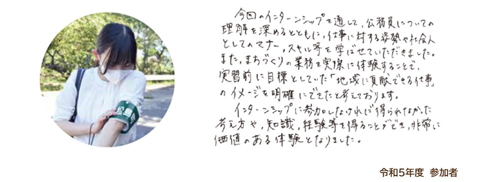 当町のインターンシップに参加いただき、公務員の仕事や社会人スキル、マナーに加え、「松島町の魅力」について、